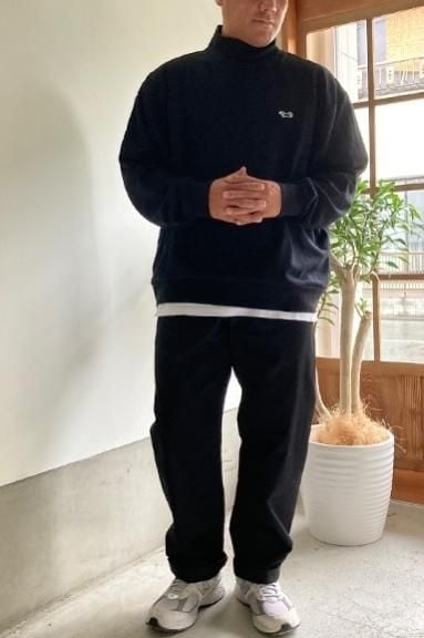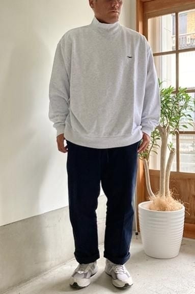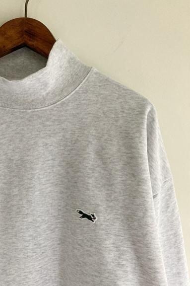 90年代に様々なスポーツメーカーがリリースしたハイネックスタイルを参考に作られたハイネックスウェットです。中肉厚な素材で一枚でもインナーにも使えるので秋冬春と長い期間重宝するアイテムかと思います。身幅やアームホールにゆとりをもたせたシルエットはストレスなく着ていただけます。スウェット素材の為、ハイネックに抵抗のある方も取り入れやすいモデルに仕上がっております。