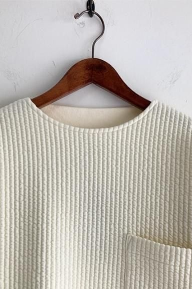 Audience 「尾州」コットンキルト クルーネック プルオーバー オーディエンス 日本製 オフアイボリー