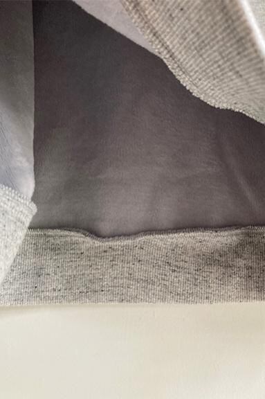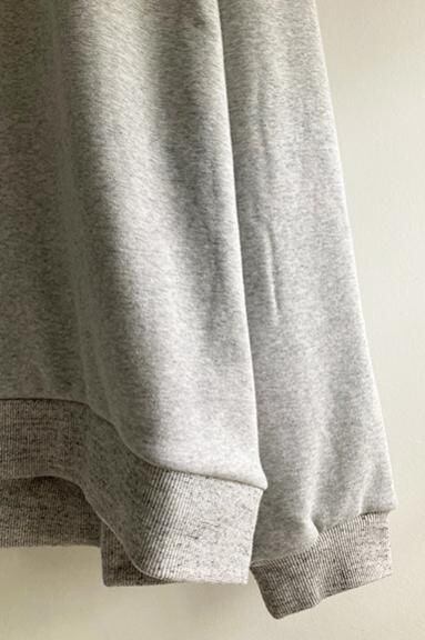 非常に肌触りのいい裏起毛素材、で柔らかく着心地は抜群。袖口、襟、裾に同素材のリブが使われ、襟まわりのモックネック仕様で通常のスウェットなどに比べ大人な雰囲気でお使いただけます。また、丸みのあるシルエットも特徴の一つで、程よい抜け感があり様々なボトムスとの相性もいいかと思います。様々なコーディネートに使いまわる一枚です。