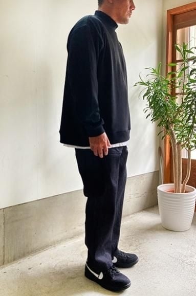 非常に肌触りのいい裏起毛素材、で柔らかく着心地は抜群。袖口、襟、裾に同素材のリブが使われ、襟まわりのモックネック仕様で通常のスウェットなどに比べ大人な雰囲気でお使いただけます。また、丸みのあるシルエットも特徴の一つで、程よい抜け感があり様々なボトムスとの相性もいいかと思います。様々なコーディネートに使いまわる一枚です。