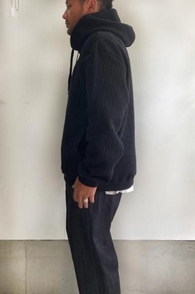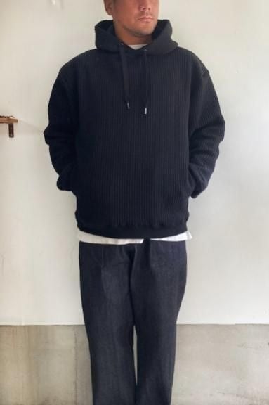Audience 「尾州」コットンキルト プルオーバー パーカー オーディエンス 日本製 ブラック オフアイボリー