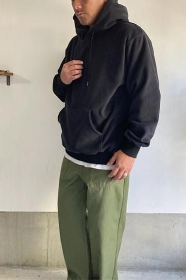 ポーラテック社の暖かく、柔らかなフリース素材で作られたプルパーカーになります。オーバーサイズ過ぎない絶妙なシルエットで様々なスタイルに取り入れていただけます。裾・袖口はリブ仕様で程よいアクセントになっています。