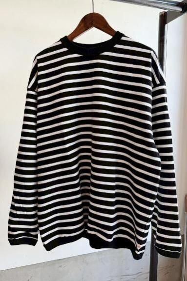melpleから"The American Ringer L/S"の入荷です。80〜90年代初頭にアメリカ製で作られていたベビーウェイトのTシャツをイメージし再構築されたThe Americanシリーズ。袖口と襟がリンガー仕様でロンT以上スウェット未満のかなり使えるカットソーです。ゆるっとしたサイズ感は1枚で着ても存在感を発揮します。生地は当時のアメリカ製のTシャツにあった独特のザラっとした質感を再現する為に、極太オープンエンド糸が仕様されハリ・コシがあり安心感があります。背面にはウォッシャブルレザーのThe Americanのパッチ付き、左裾にはmelple三角ピス付きです。