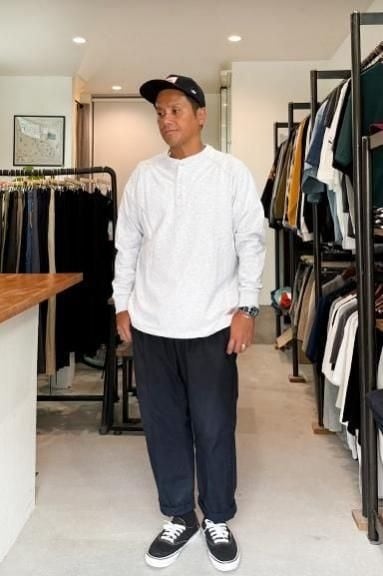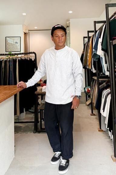 BIGMIKEからヘンリーネックロンTが入荷しました。10オンスの肉厚なコットン生地を使用した、存在感のあるロングスリーブTシャツ。まるでスウェットのようなタフさと、Tシャツらしいラフな着心地を兼ね備えた、中間的ポジションの1枚です。回初登場となるヘンリーネック仕様は、ワークやミリタリー、バイカーなどのアメリカンヴィンテージを想起させる、無骨でクラシックな印象。一枚で着てもアウターライクな重厚感があり、シャツやベストとのレイヤードにも相性抜群。