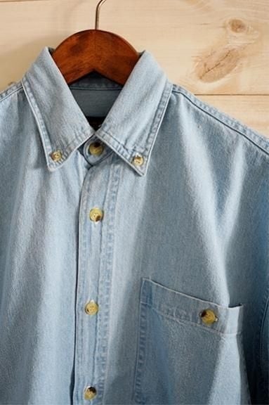 コブラキャップから、デニムのボタンダウンシャツの入荷です。洗い加工が施されたアメリカらしいラフなBDシャツです。80年代、90年代を思わせるビッグサイズな作りです。ボタンダウンカラー、裾は長めに設定されラウンドしており、背面のヨークとトラディショナルなボックスプリーツです。サイズ感はアメリカサイズで、ゆったり、ざっくりと着ていただけます。