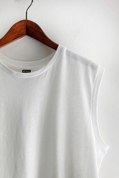 Audienceから「丹後」度詰天竺6オンスサイドスリット ノースリーブ Tシャツが入荷です。レイヤードスタイルの引き立て役としてタンクトップよりさらに安心感のあるノースリーブTシャツのご提案です。しなやかでソフトな肌触りと、しっかりとした着心地をつくる、上質な綿(リングスパンコットン)が使用されています。リングスパン糸は糸そのものに強度があり、表面が滑らかなのが特長。