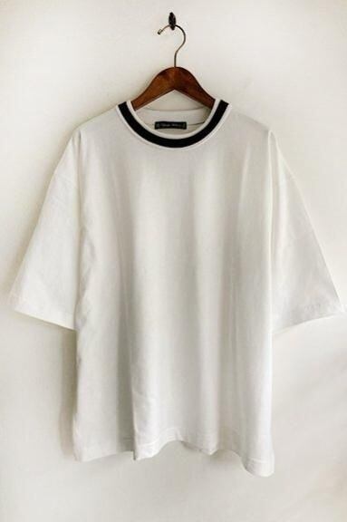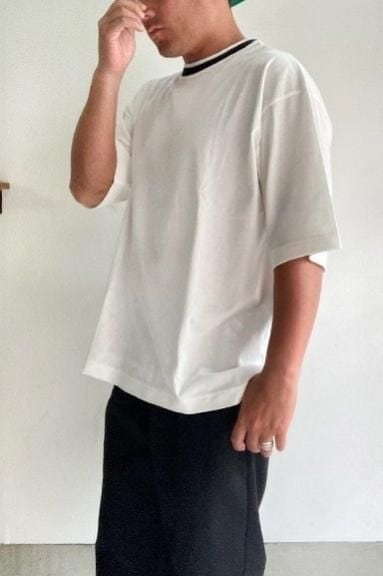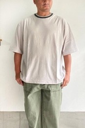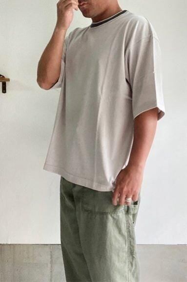 Audience 「丹後」度詰天竺 2トーンネック ハーフスリーブTシャツ 日本製 オーディエンス オフホワイト シルバーグレー