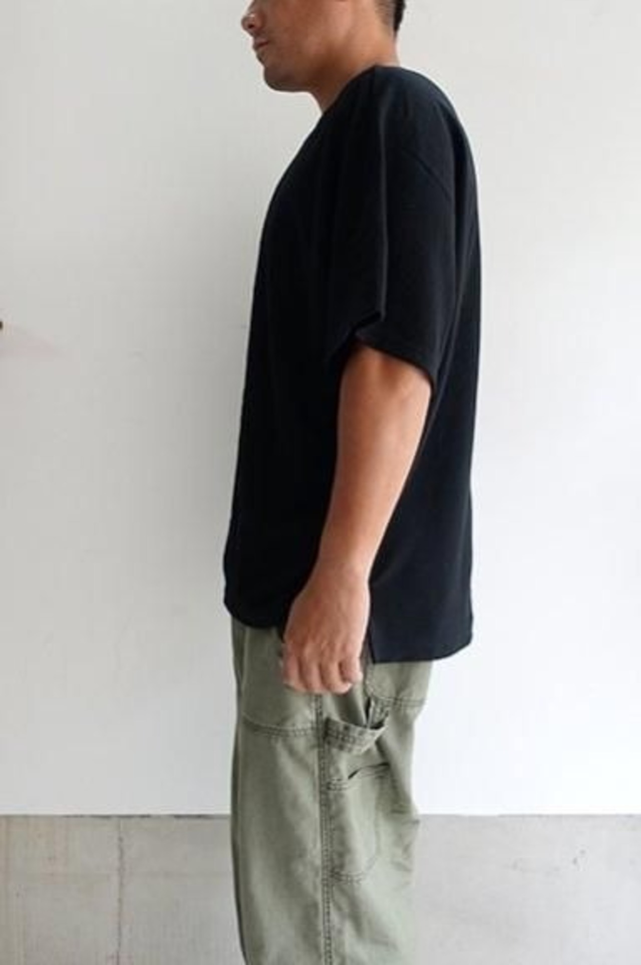 melpleからSalt Creek Dolman sleeveが入荷しました。ドルマンスリーブの独特なフォルムと前後の身頃に切り替えを入れたデザインは1枚でも強い存在感を発揮します。特殊紡績された糸は圧倒的に毛羽立ちが少なく、ドライタッチで肉厚で繰り返しの洗濯でも型崩れがし難くいのも嬉しいポイントです。両裾にはスリットが入り、左裾にはmelple三角ピス付いております。