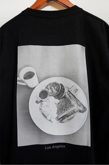 melpleからBreakfast S/Sが入荷しました。melple代表小野寺氏が旅先のLAのお気に入り朝食をスナップ、バックプリントに使われた一枚です。今回撮影された朝食はLA/Swingers Dinerで撮影されたもの。フロントには『Have a Great Breakfast』のメッセージが発泡プリントではいっています。ご機嫌な朝食から始まる元気な1日を。