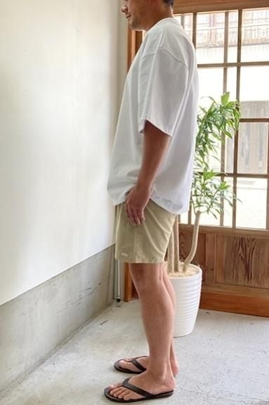ベーシックなデザインで飽きることなく着ていただけるトランクスをつくっています。国内の熟練した工場で縫い上げられたトランクスは、履き心地・シルエット・使い勝手が揃った一枚となっています。コットンナイロンのすピーチスキンのような雰囲気のある素材で今年は裁断から縫製まで茅ヶ崎でおこなった”MADE IN CHIGASAKI”となります。フロントは伸縮性のある布地が縫い付けられ、ウエストの一番上部分のみテープで止める仕様。おさまりも良く、履いた時の見え方も綺麗に見えます。サイドポケットの裏地はメッシュ仕様で水はけも良く、街履きにも十分対応出来ます。ボディと同色のベルトループを1本だけ付け、鍵など付けらる仕様となります。ウエスト背面に付いたブランドの織ネームも程よいアクセントになっています。素材自体が非常にしっかりとした素材で、クラシックな雰囲気漂うトランクスとなっています。