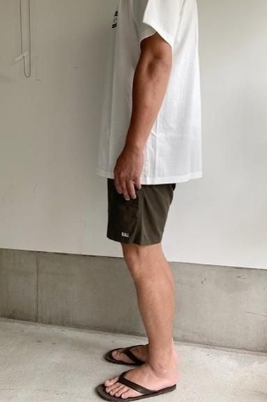 ベーシックなデザインで飽きることなく着ていただけるトランクスをつくっています。国内の熟練した工場で縫い上げられたトランクスは、履き心地・シルエット・使い勝手が揃った一枚となっています。コットンナイロンのすピーチスキンのような雰囲気のある素材で今年は裁断から縫製まで茅ヶ崎でおこなった”MADE IN CHIGASAKI”となります。フロントは伸縮性のある布地が縫い付けられ、ウエストの一番上部分のみテープで止める仕様。おさまりも良く、履いた時の見え方も綺麗に見えます。サイドポケットの裏地はメッシュ仕様で水はけも良く、街履きにも十分対応出来ます。ボディと同色のベルトループを1本だけ付け、鍵など付けらる仕様となります。ウエスト背面に付いたブランドの織ネームも程よいアクセントになっています。素材自体が非常にしっかりとした素材で、クラシックな雰囲気漂うトランクスとなっています。
