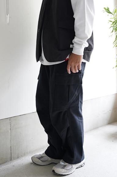 melpleからBerkeley Cargo Pantsが入荷しました。綿100%の肉厚で非常に暖かみのある素材で作られたパンツです。穿いたときのシルエットは程よくゆるく、両腿についたポケットと膝部分のたるみが独特の立体感のある絶妙なシルエットとなっています。レングスはジャスト〜やや短めで穿ける長さとなっています。よく見ると所々生地のステッチにブルーの糸が使【れさりげないアクセントに。ゆとりのあるパンツで履き心地も非常によく、ノーストレスでお使いただけます。