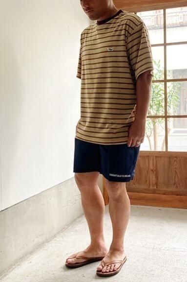 様々なコーディネートに使いまわしの効く2タックショーツ。アメトラっぽい雰囲気でも使えるよう、腰回りは2タックで程よくゆとりがありつつもセンタープレスできっちり感も加えた1本です。ウエストはベルトループが付き、中にはドローコードもあるのでベルト有無しどちらでもお使いいただけます。また、タテ糸にナイロン、ヨコ糸には麻(ラミー)を使って織られ、しなやかさ、ドライタッチ、ほのかな光沢感が絶妙にミックスされ上品な印象に仕上がっています。Tシャツにはもちろん、ポロシャツやBDシャツなどにも合わせやすいショーツとなっています。左裾には「ESSENTIALS TO RELAX」の刺繍が施されています。