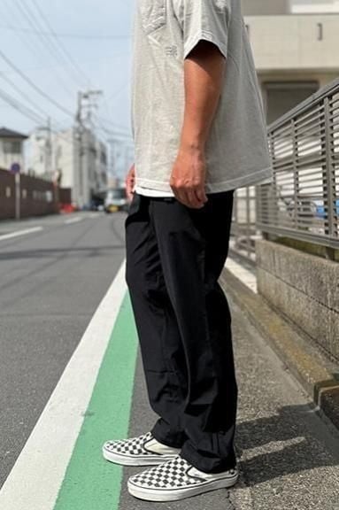 ヒップやワタリにはゆとりを持たせ膝から裾にかけては綺麗なテイパードを掛け穿いたときのシルエットが抜群。ウエストにはナイロンウェビングベルトを採用してサイズ調整も容易になっています。