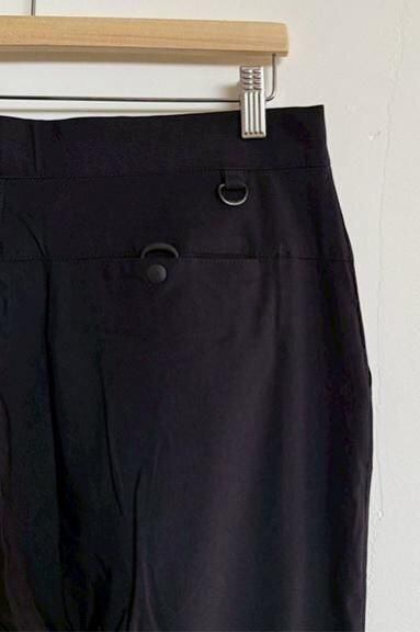 バックポケットはヨークを活かしたスリットポケットで右側にはラバープル付きのスナップ釦を採用して貴重品などの収納に適しています。ポケット袋布はポリエステル製に変更して速乾性を向上させました。右バックポケット上にはDカン付き。どんなシーンでも間違いなく重宝する万能パンツとなっています。