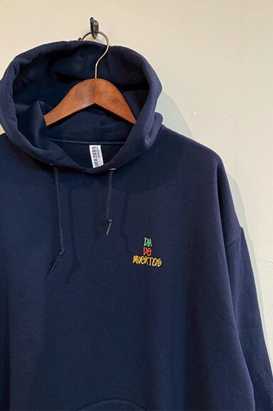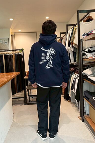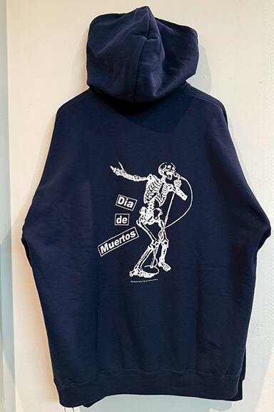 JERZEESから"DIA DE MUERTOS" PULL HOODIEが入荷しました。程よい厚みの8オンス裏起毛パーカーに、メキシコの祝祭「DIA DE MUERTOS(死者の日)」をモチーフにしたデザインパーカー。バックには躍動感あるスケルトンのグラフィックを大胆にプリントし、フロントにはカラフルな刺繍ロゴを施した遊び心のある一着です。