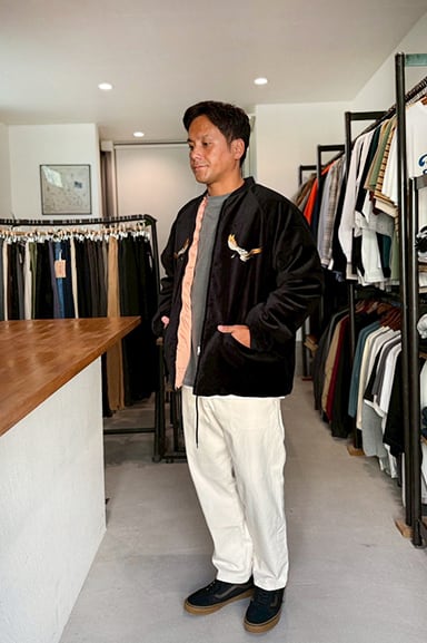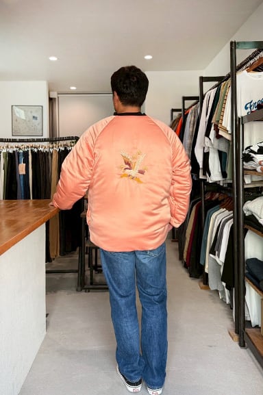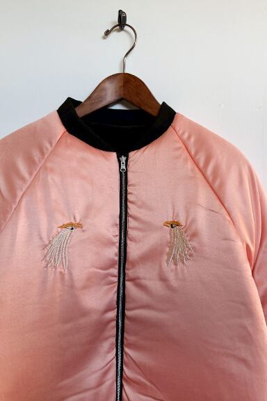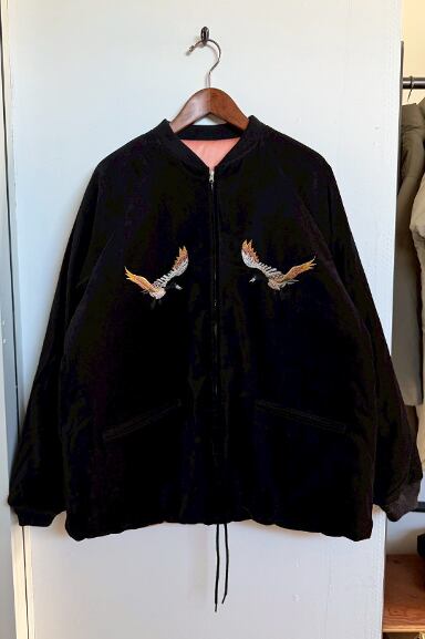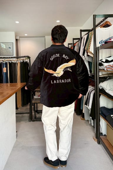 THRIFTY LOOKからSOUVENIR GOOSE BAY LINEDJACKETが入荷しました。50年代のスーベニアジャケットをアップデートした一枚です。アーカイブのデザイン要素を生かしつつ、現代的なシルエット、ディテールを加えられています。パターンは、ボリュームのある直線的なラグランスリーブで程よいオーバーシルエットに仕上げられています。生地は落ち着いた光沢のあるとコットン別珍。裏生地にはポリエステルサテンを採用することで、軽量で袖通しの良いリラックスした着心地です。刺繍のモチーフはヴィンテージでも希少な"GOOSE BAY LABRADOR"スーベニアジャケットが忠実に再現されています。