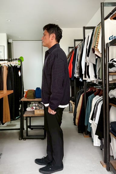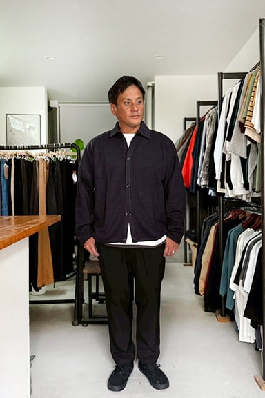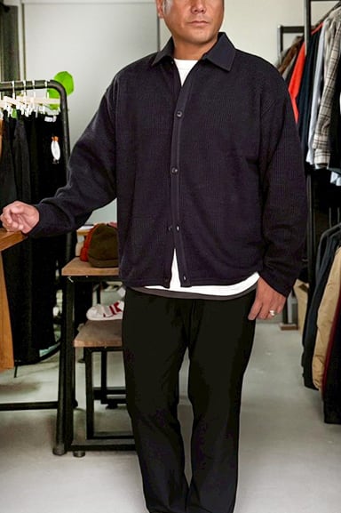 ポロシャツのような襟とボタンの前開きデザインでボタンを閉じても、開いても様になるアイテムです。