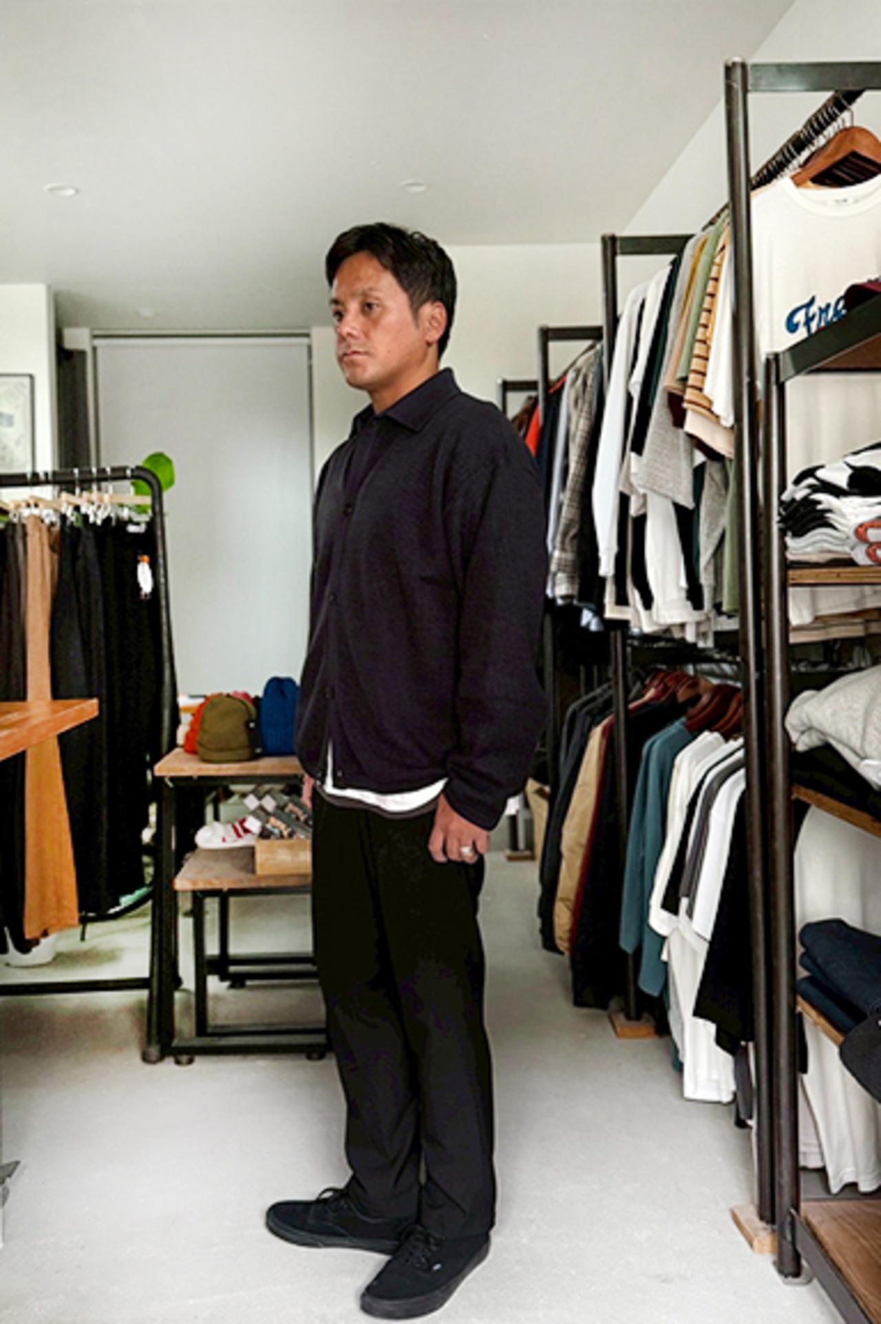 Audience ウールビッグワッフル ニットソー ポロカーディガン オーディエンス Black