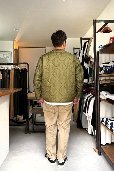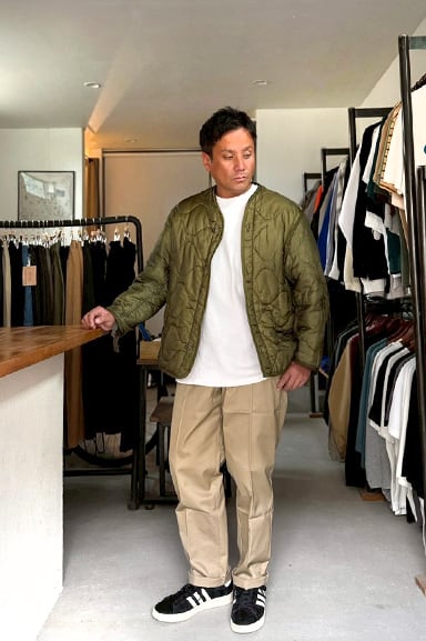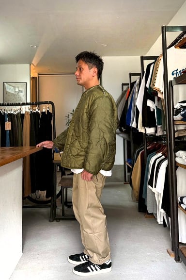 フロントの留め具は、従来のフック仕様からボタンタイプへ変更。よりワークパンツらしい無骨な表情に仕上げ、新たな“定番の形”として提案できる一本になりました。サイドとバックに計4つのポケットを搭載し、デイリーウェアとしての使い勝手も十分です。