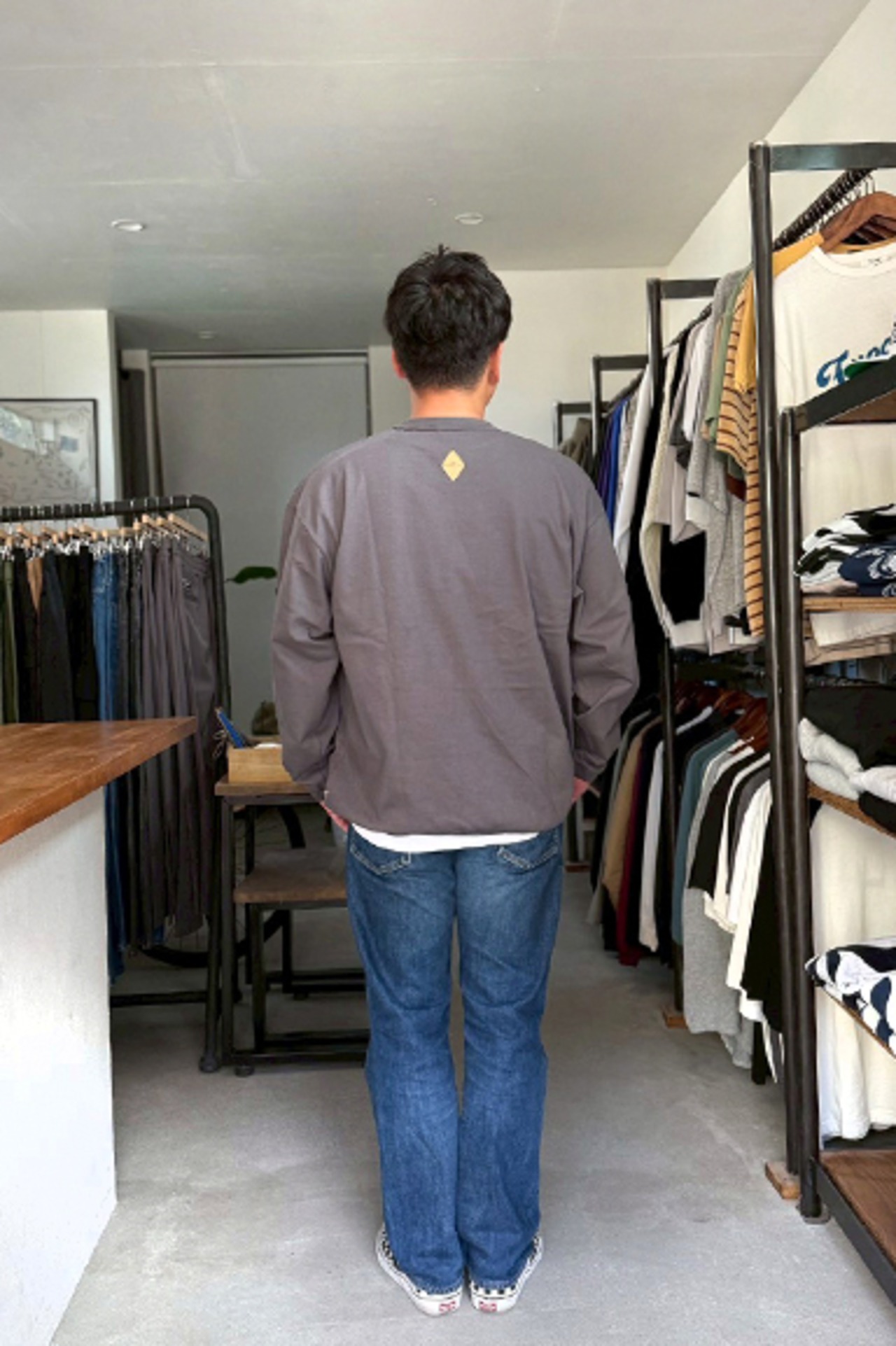 melpleから"The American Ringer L/S"の入荷です。80〜90年代初頭にアメリカ製で作られていたベビーウェイトのTシャツをイメージし再構築されたThe Americanシリーズ。袖口と襟がリンガー仕様でロンT以上スウェット未満のかなり使えるカットソーです。ゆるっとしたサイズ感は1枚で着ても存在感を発揮します。生地は当時のアメリカ製のTシャツにあった独特のザラっとした質感を再現する為に、極太オープンエンド糸が仕様されハリ・コシがあり安心感があります。背面にはウォッシャブルレザーのThe Americanのパッチ付き、左裾にはmelple三角ピス付きです。