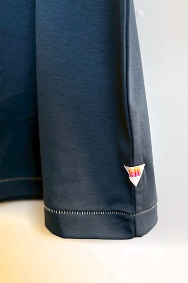 袖口や裾はヴィンテージTeeにみられるブラインドステッチが採用され、デザインの一部となっています。左裾にはmelple三角ピス付きです。