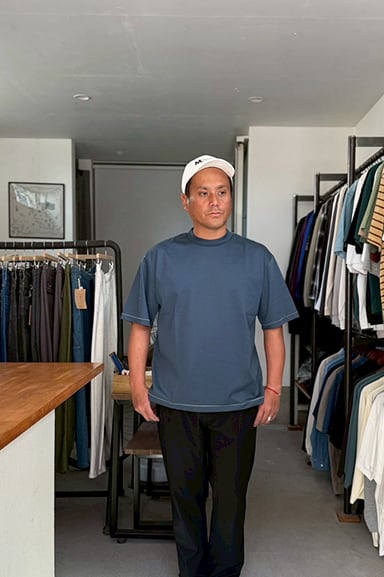 少し詰まった首回りやリブ幅、程よく肩が落ちるドロップショルダー、身幅にはゆとりを持たせた絶妙なバランスで仕上げられています。